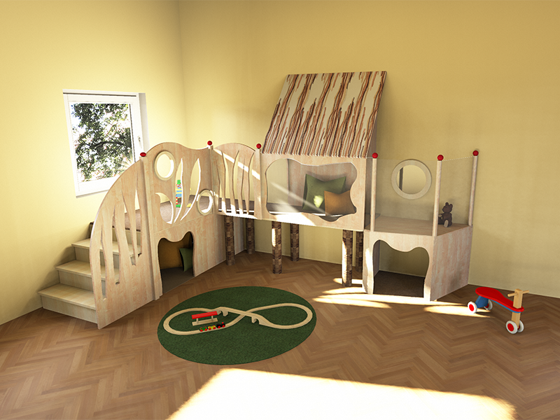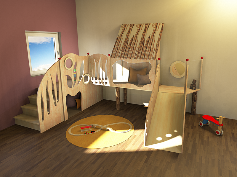 Abwechslungsreiche Formen und Strukturen spiegeln die Vielfalt der Natur wieder. Mit dieser Spielebene haben wir Anreize geschaffen, um die Fantasie der Kinder zu fördern. Die Kinder sollen spielerisch Interesse an sich Selbst und der Welt entwickeln und neben den motorischen Fähigkeiten auch ihr Selbstbewusstsein steigern.