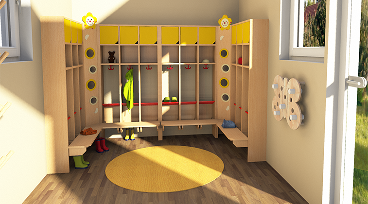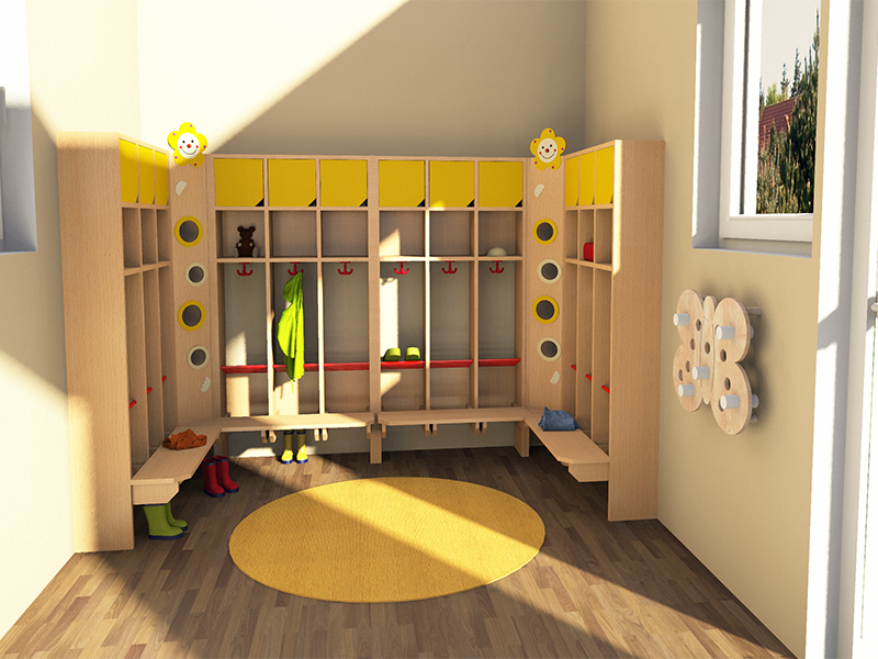 Unsere Garderoben sind speziell an die Bedürfnisse von Kleinkindern angepasst. Sie zeichnen sich durch ausreichend große Fächer, eine altersgerechte Sitzhöhe und pflegeleichte Materialien aus.