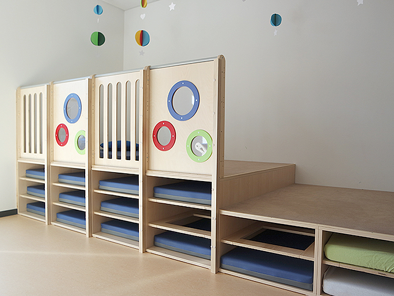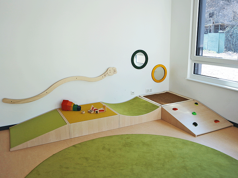 Wunderschöne Spiel- und Schlafebenen mit farbigen Akzenten aufgepeppt, schmücken die Räume und laden zum Abenteuer ein. Viele Wände wurden mit verschiedenen Lernwänden und Wandspielen ausgestattet. Die Kinder können in jeder Ecke etwas Aufregendes und Neues entdecken. |